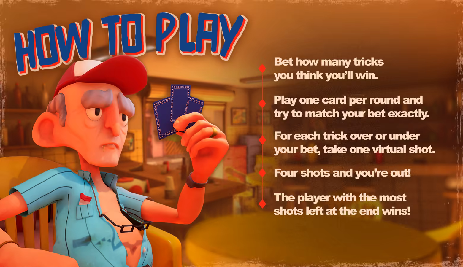 Players bet how many tricks they think theyâll win, then play their cards round by round to hit that number exactly. If you win more or fewer tricks than you bet, youâll take a virtual shot for each one off. Hit four shots and⊠youâre out. Capotado!