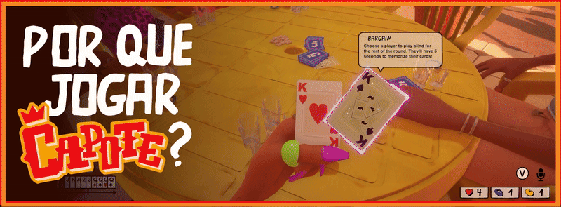 Capote é um jogo de cartas online para 2 a 6 jogadores que mistura regras clássicas de vaza com apostas ousadas e cartas especiais caóticas. Cada partida se passa em uma mesa de cartas casual, cheia de personagens coloridos—e em Capote, nenhuma vitória é garantida, e qualquer carta pode virar o jogo.