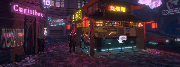 Explore a carefully crafted futuristic setting, with detailed environments and striking visual aesthetics. The neon-noir ambiance combines vibrant colors with dense atmospheres, creating an immersive world that reinforces the atmosphere of mystery and technological decay.