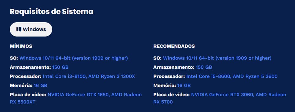 Verificar se seu computador está dentro dos requisitos de sistema exigidos pelo jogo é uma etapa essencial que precisa ocorrer antes da visualização da chave no site. Caso tente jogar um jogo sem respeitar estes requisitos, problemas de desempenho e/ou crashes serão inevitáveis. Nestes casos, infelizmente não temos como aprovar a solicitação de reembolso. Nos jogos de PC, os requisitos sempre estarão listados ao fim da página como no exemplo abaixo: